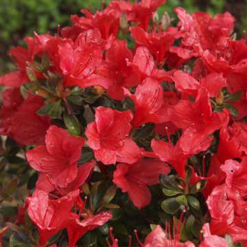 Japanse AzaleaHoogte tot 100cm.Bloem:rood in april-meiHalfschaduw,schaduwHumusrijke.licht vochtige standplaatsBladhoudendGeschikt als rotsplant en vakbeplanting