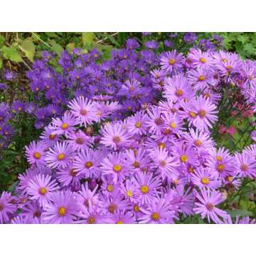 AsterHoogte tot 50cm.Bloem:lichtpaars in september-oktoberZonVoedzame,dorlatende grondGeschikt als vakbeplanting7st.per m2