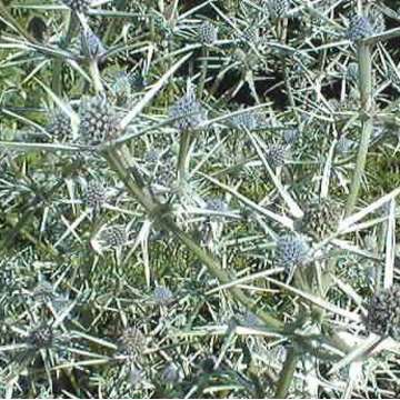 KruisdistelHoogte tot 40cm.Bloem:grijsblauw in juli-septemberBlad:zilvergrijsZonDroge standplaatsGeschikt als vakbeplanting7st.per m2