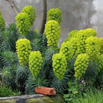 WolfsmelkHoogte tot 60cm.Bloem:geelgroen in april-juniBlad:grijsblauw naar rood verkleurendZon,halfschaduwGeschikt als borderplant7st.per m2