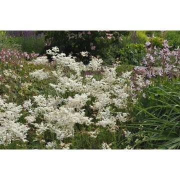 MoerasspiraeaHoogte tot 70cm.Bloem:wit in juli-augustusZon,halfschaduwVochtige standplaatsGeschikt als vakbeplanting7st.per m2