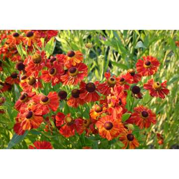 ZonnekruidHoogte tot 130cm.Bloem:rood met geel in juli-septemberZonBijenlokkendGeschikt als snijbloem en borderplant7st.per m2