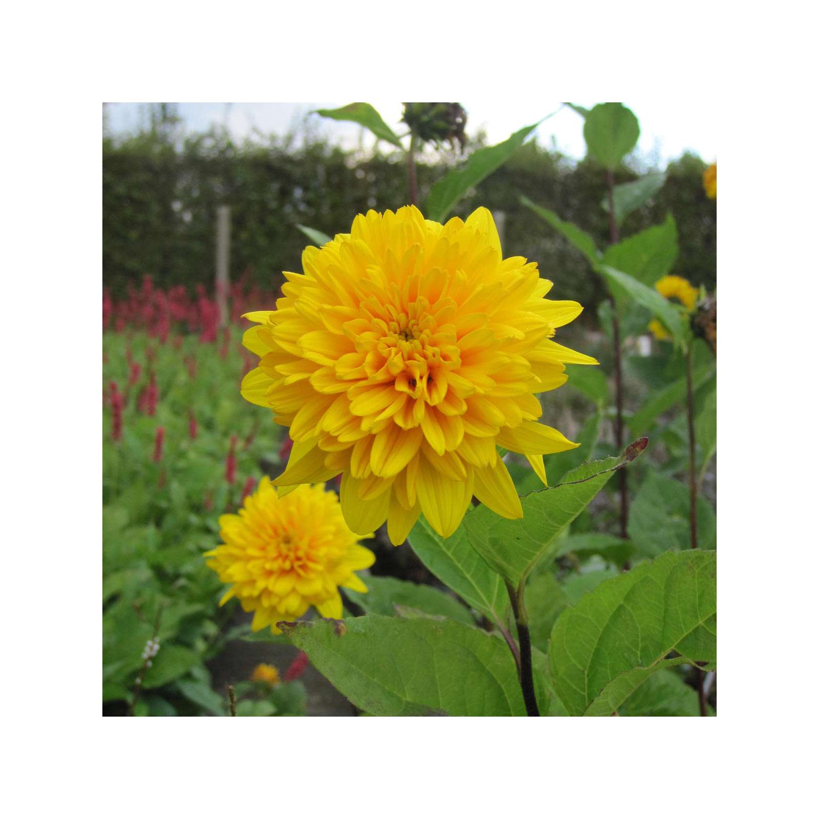 Vaste ZonnebloemHoogte tot 130cm.Bloem:gevuld,geel in augustus-oktoberZonDroge standplaatsInsectvriendelijkGeschikt als snijbloem en vakbeplanting3st.per m2