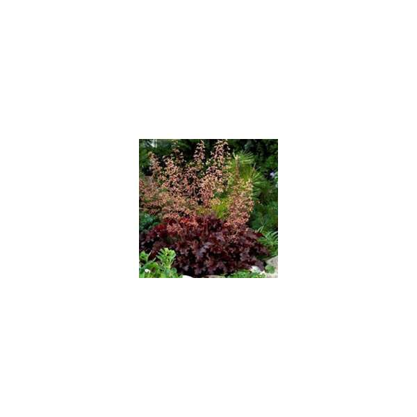 PurperklokjeHoogte tot 35cm.Bloem:cremewit in mei-augustusBlad:bruinpaarsZon,halfschaduwGeschikt als bodembedekker en borderplant9st.per m2