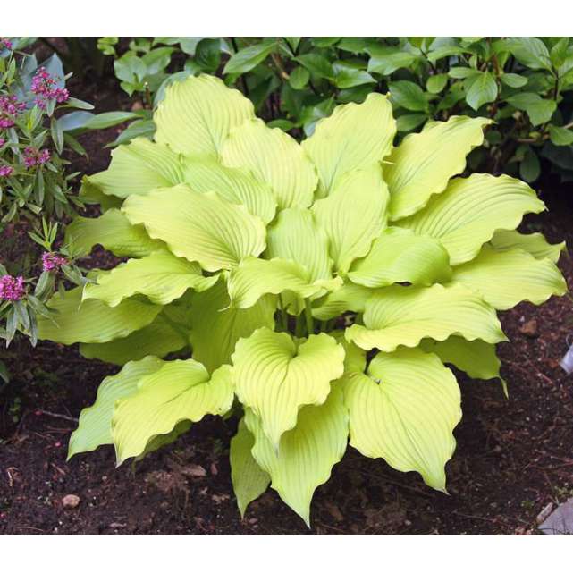 HartlelieHoogte tot 55cm.Bloem:lilchtlila in juli-augustusBlad:geelgroen,rand gegolfdHalfschaduw,schaduwGeschikt als vakbeplanting7st.per m2