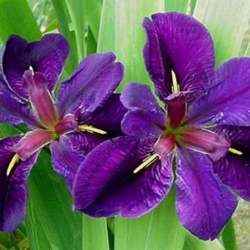 Louisiana IrisHoogte tot 100cm.Bloem:blauw,zwart in juni-juliZon,halfschaduwVochtige standplaatsGeschikt als moerasplant en snijbloembijen en vlonders lokkend9st.per m2