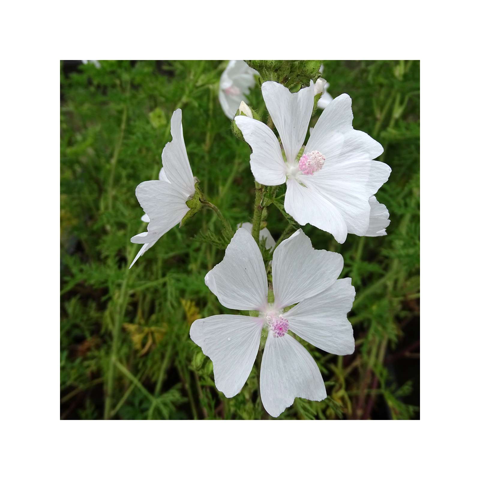 Struikmalvahoogte tot 105cm.Bloem:wit in juni-oktoberBald"blauwgroenzonDroge standplaatsBijen en vlinders lokkendGeschikt als snijbloem en solitair2st.per m2
