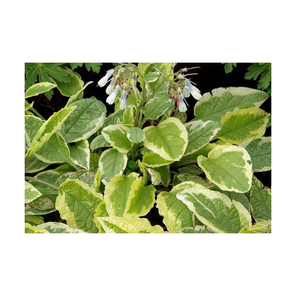 SmeerwortelHoogte:30cmBloem:wit in mei-juliBlad:lichtgroen met gele randZon,halfschaduwHumusrijke grondBorderplant5st.per m2