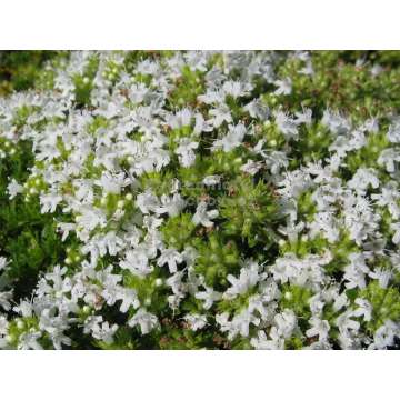KruiptijmHoogte tot 10cm.Bloem:wit in juni-augustusZonDroge,kalkrijke standplaatsBijen en vlinders lokkendGeschikt als rotsplant en bodembedekker12st.per m2