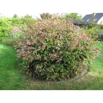 Lage tot matig hoge struikHalf wintergroenBlad:glanzend groenBloem:rose met wit in juli-septemberFraaie heester te gebruiken als solitair