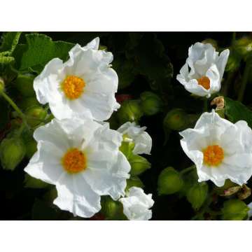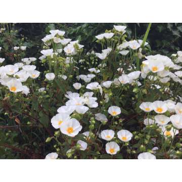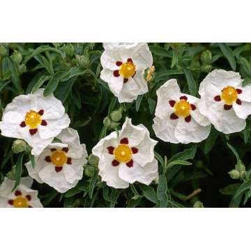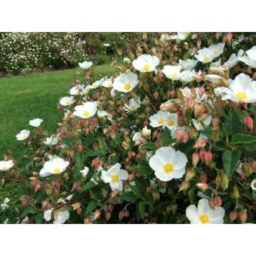 CistusroosHoogte tot 150cm.Bloem:wit in mei-juniBossige groeiwijzeZon,halfschaduwDoorlatnede standplaatsWenselijk om niet te snoeien