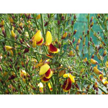 Brem,GeitenklaverHoogte tot 150cm.Bloem:geel met rood in april-meiZon,halfschaduwGeschikt als solitair en vakbeplanting
