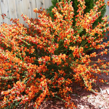 Brem,GeitenklaverHoogte tot 120cm.Bloem:oranjegeel met rood in mei-juniZon,halfschaduwDroge standplaatsGeschikt als solitair en vakbeplanting