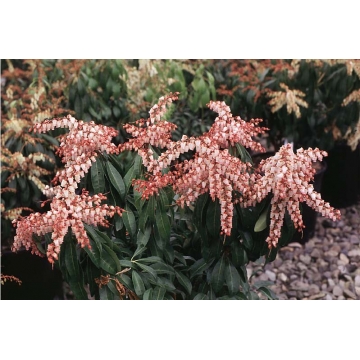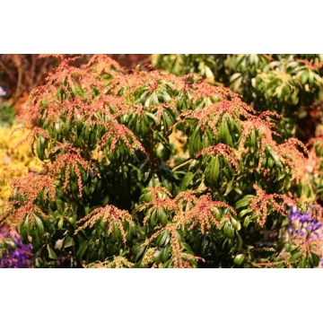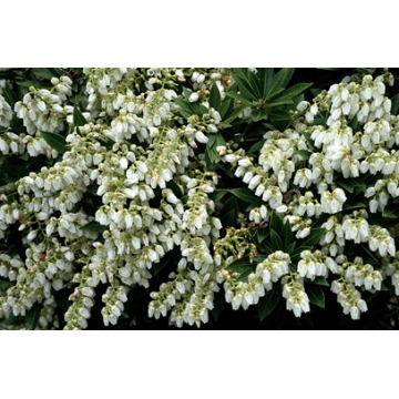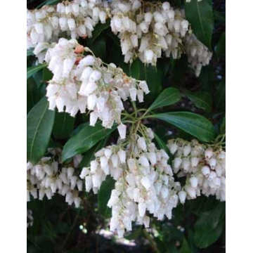 AndromedaHoogte tot 100cm.Blad:groen,in het voorjaar rood uitlopendBloem:roomwit in april-meiStandplaats:halfschaduw,schaduwHumusrijke,zure grond