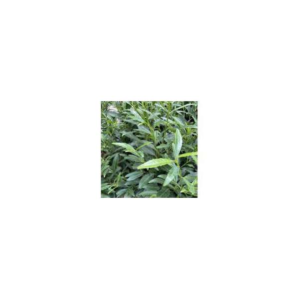 LaurierprunusHoogte tot 150cm.Bloem:wit in juni-juliBlad:smal,groen,gekarteldZon,halfschaduwLicht vochtige standplaatsGeschikt als vakbeplanting,kuipplant en hagen