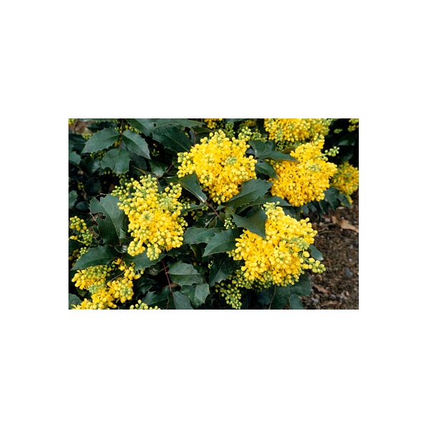 MahoniestruikHoogte:breed opgaand tot 1,5mtr hoogteBloem:goudgeel in maart-meiVruchten:blauwzwart,witachtig berijptBlad:glanzend donkergroen,in de winter bronskleurig