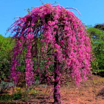 Amerikaanse JudasboomTreurvormHoogte tot 300cm.Bloem:dieprose in april-meiBlad:rond,bruinroodZon,halfschaduwGeschikt als solitiare