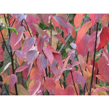 Witte KornoeljeHoogte tot 300cm.Bloem:wit in mei-juniZon,halfschaduwIetwat vochtige standplaatsFraaie herfstkleurGeschikt als solitair en vakbeplanting