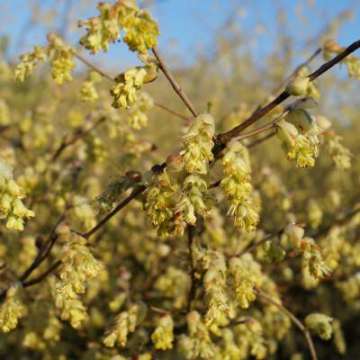 SchijnhazelaarBlad:5-10cm.,onderzijde behaardBloem:7-10cm.zachtgeel,welriekend in aprilFraaie solitair