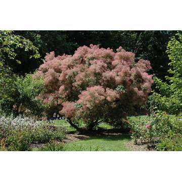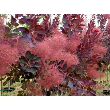 PruikenboomHoogte tot 500cm.Bloem:rose in juli-augustusBlad:paarsbruinFraaie herfstkleurZon,halfschaduwGeschikt als solitair en vakbeplanting