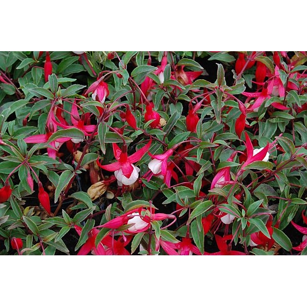 TuinfuchsiaHoogte:tot 100cm Bloem:rood met een witte kelkBlad:donkergroenHebben winterbescherming nodigZon,halfschaduw