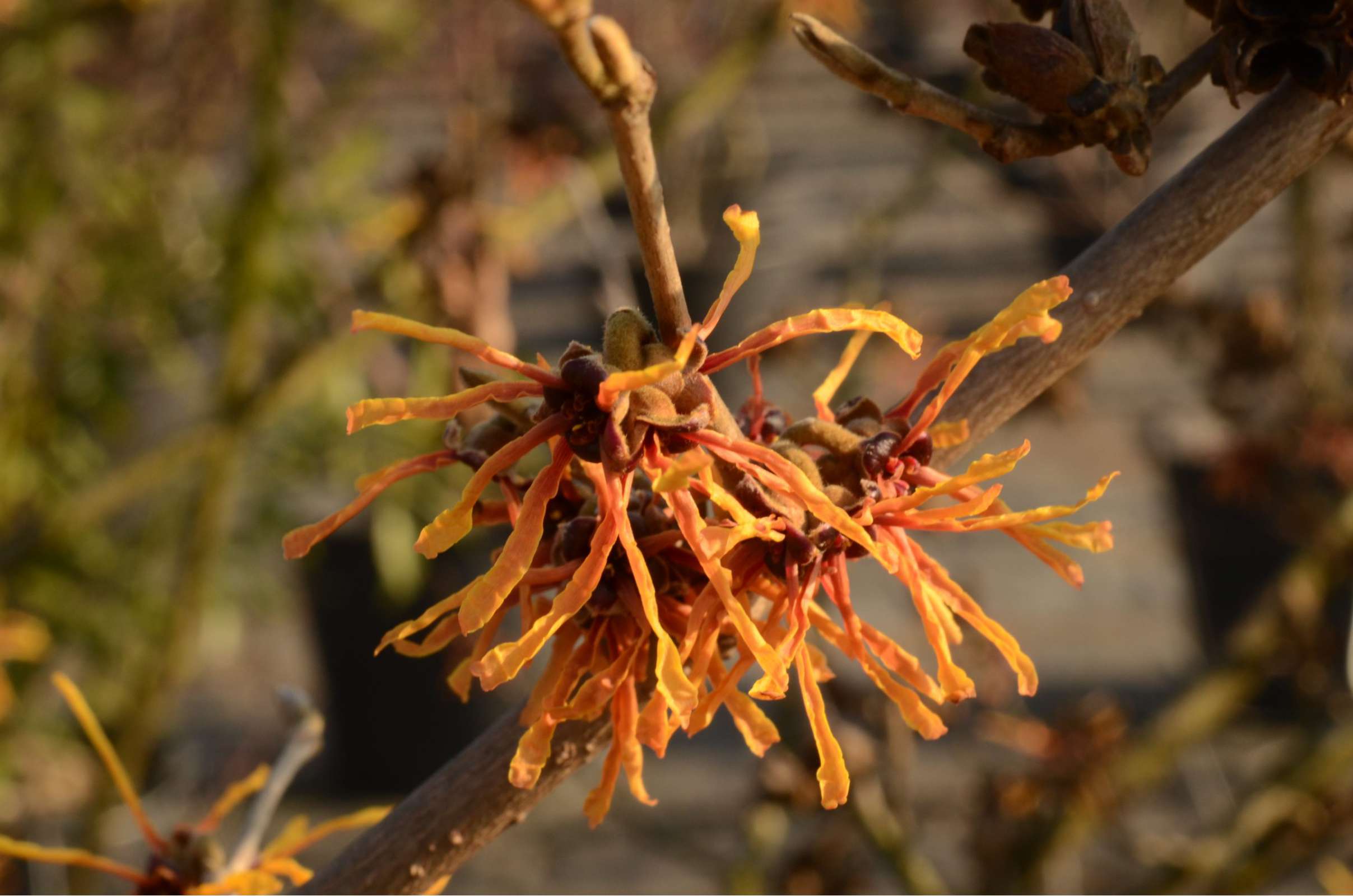 ToverhazelaarHoogte tot 300cm.Bloem:warm oranje in februari-maartZon,halfschaduwHumusrijke,doorlatende standplaatsGeschikt als solitair