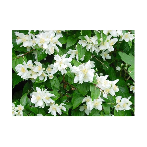 BoerenjasmijnHoogte:tot 1mtrBloem:iets roomwit,sterk geurend,in mei-juniZonVoedzame,iets vochtige standplaatsGeschikt als solitair en vakbeplanting