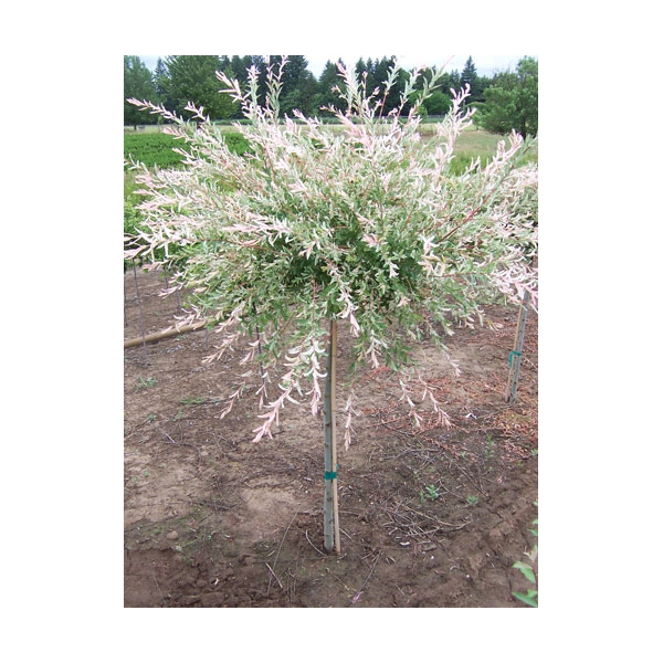 WilgMatig hoge struik tot 1,5mtrTwijgen oranjebruin tot roodBlad:grijzig groen,gestippeld,rose uitlopendGeschikt als solitair