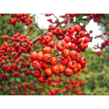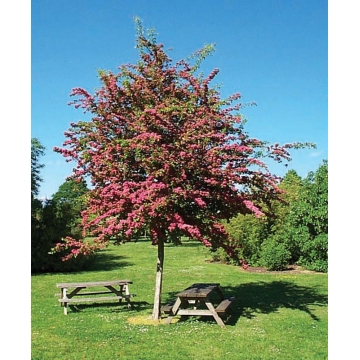 MeidoornHoogte tot 7 mtr.Bloem:lichtrose in mei-juniVruchten:roodZon,halfschaduw