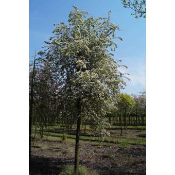 Eenstijlige meidoornKleine,zuilvormige boom tot 6mtr.Blad:diep gelobd,donkergroenBloem:wit in meiGeschikt als solitair in de kleinere tuinen