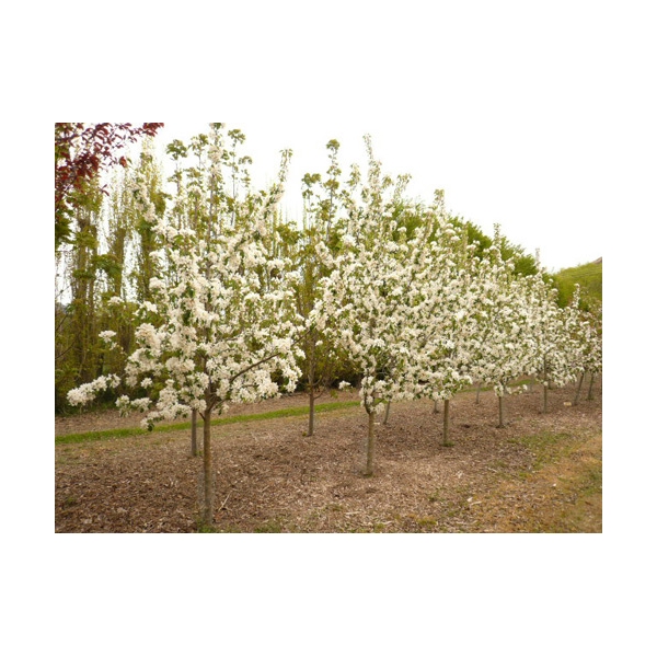 SierappelHoogte tot 450cm.Bloem:wit in mei-juniVrucht:Talrijk,rood met geelZonBeschutte standplaatsGeschikt als solitair