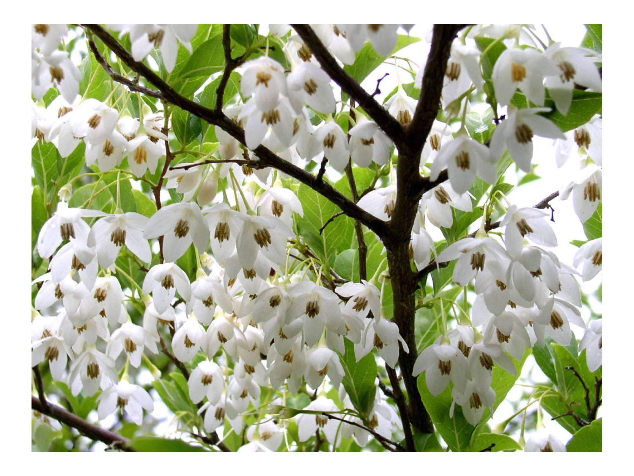 Japanse StoraxboomHoogte tot 4mtr.Blad:elliptisch,toegespitstBloem:wit,geurend,in mei-juniGeschikt als solitair in de kleinere tuinen