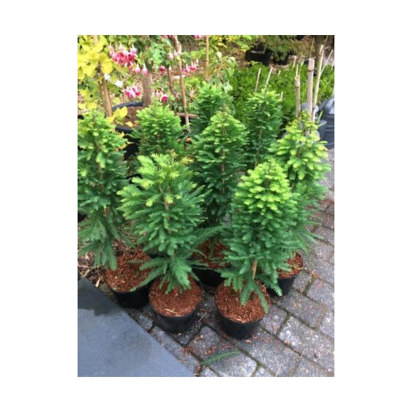 Naalden;donkergroen,zeer fijn,lang aan de plant blijvend