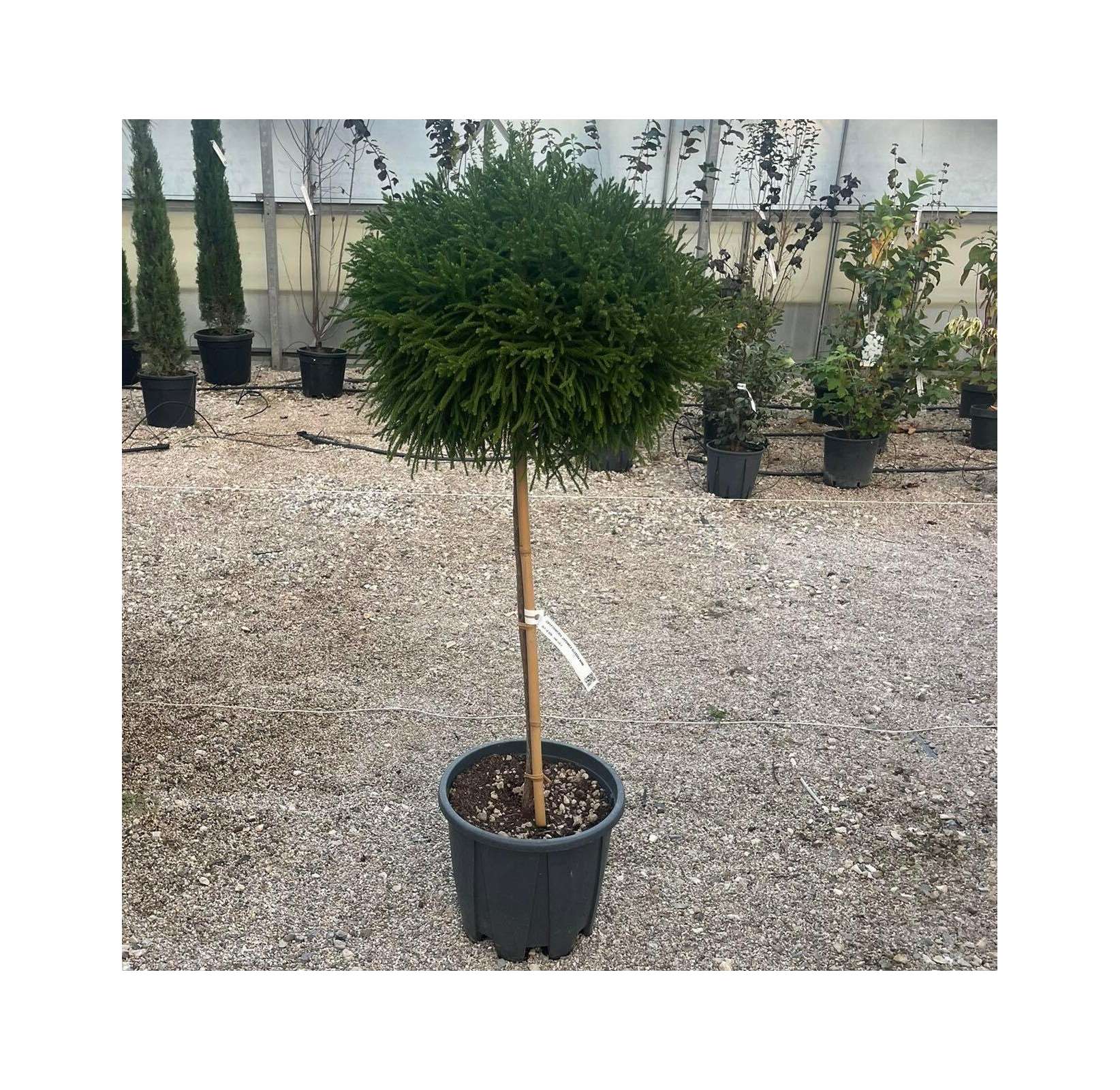 Coniferen op stam op container
