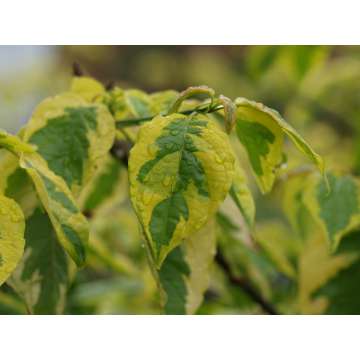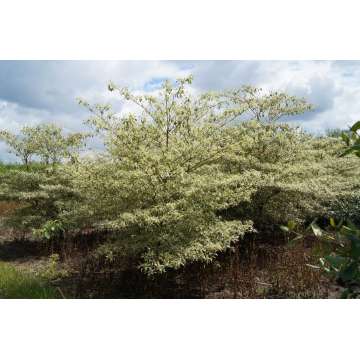 Bonte KornoeljeBlad:wit gevlektTakken:in etages uitstaandBloem:wit in mei-juli