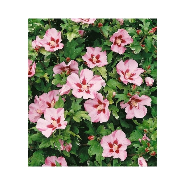 Bloem:zachtroze met donkerroze hart in augustus-oktober