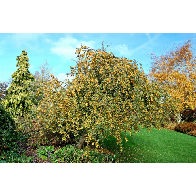 SierappelHoogte tot 450cm.Bloem:wit in mei-juniVrucht:zeer talrijk,geelZonBeschutte standplaatsGeschikt als solitair