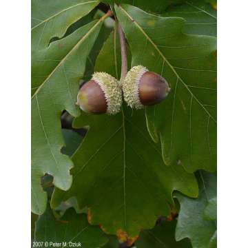 Tweekleurige EikHoogte tot 10mtr.Blad:gelobd,leerachtig,onderkant grijs