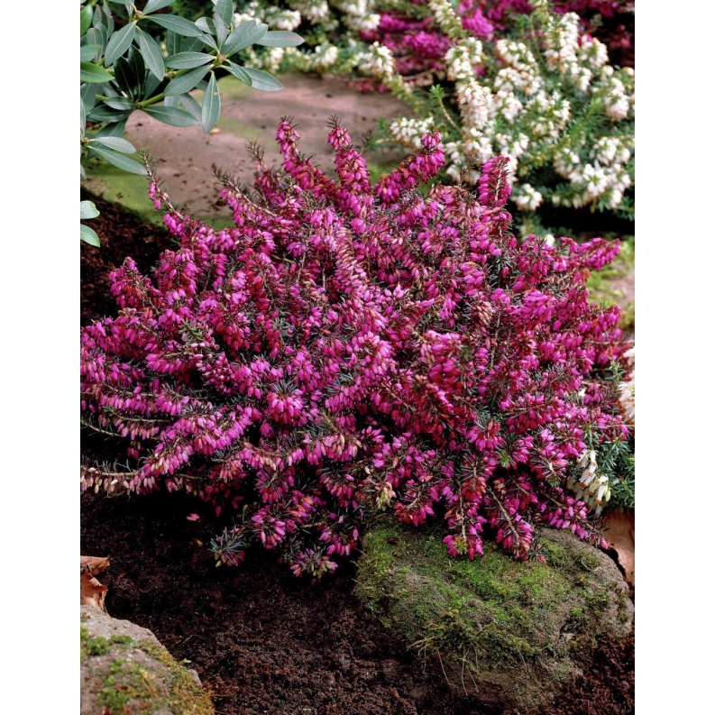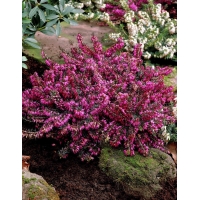 WinterheideHoogte:tot 40cm.Blad:bronsgroenBloem:wijnrood in januari-april Geschikt voor de kalkhoudende grond