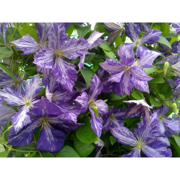 Hoogte tot 300cm.Bloem:donkerblauw met lichtblauwe strepen,in juni-septemberWortelhals beschermen tegen de zon