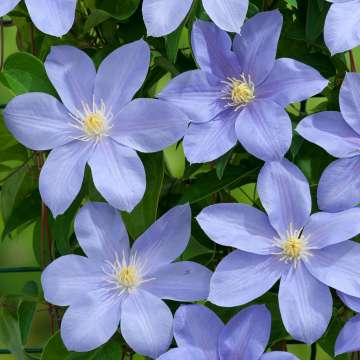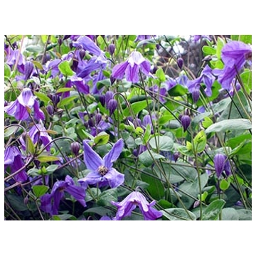 BosrankHoogte tot 150cm.Bloem:paars in juli-septemberZon,halfschaduwWortelhals beschermen tegen de zon