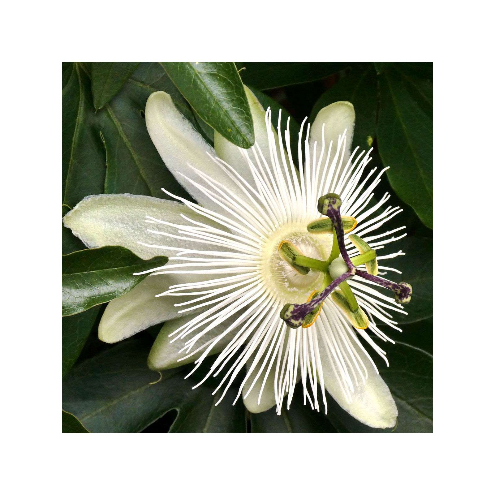 PassibloemPlant als de gewone passibloemBloem:helderwit i juli-septemberZonnige standplaatsHebben winterbescherming nodig