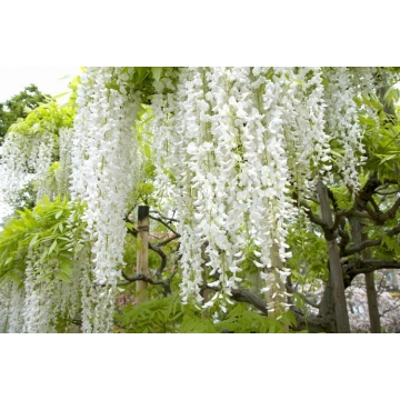 Blauwe(witte)regenHoogte:tot 5mtrBlad:oneven samengesteld,groenBloem:zuiver wit in grote trossen in juniRechtswindend(met de zon mee)Zonnige standplaats