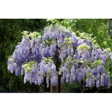 Blauwe regenHoogte:tot 5mtrBlad:oneven samengesteld,groenBloem:lilapaars in grote trossen in mei-juniLinkswindend(tegen de zon in)Zonnige standplaats