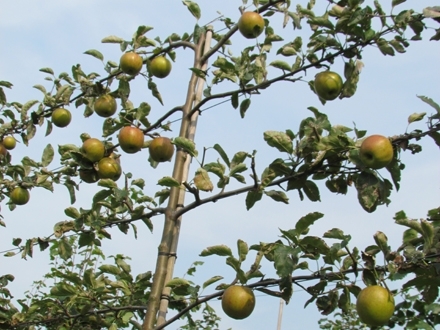 Dit zijn de bomen waar vers het rek is ingebonden.Er moet dus een leivorm ontstaan.Als ze iets zwaarder zijn,staan de takken al in de goede stand en dienen ze ieder jaar te worden gesnoeid en bijgebonden.zo is er voor iedereen wat bij,afhankelijk van de kosten.
