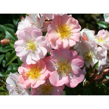KlimroosHoogte:180/300cmStandplaats:zonnigPlantafstand:60cmBloeitijd:juni-oktoberGebruik:tegen muur,schutting of pilaarLicht geurendHalf maart na de snoei bemesten