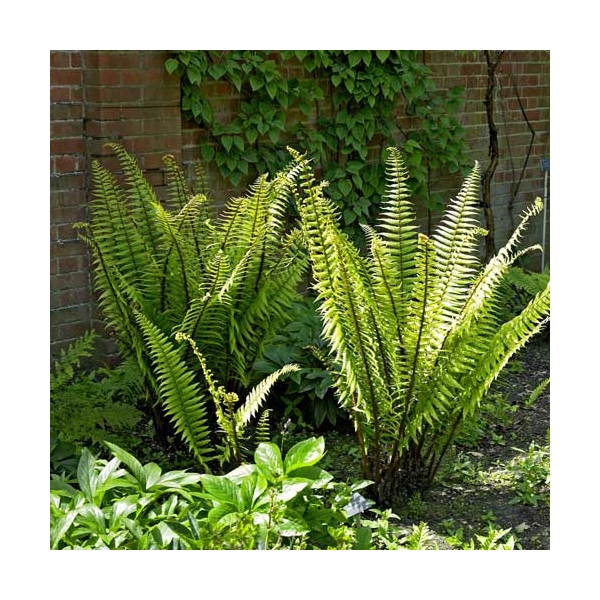 Zwarte Mannetjes varenBlad:glanzend donkergroen,leerachtigHoogte:100cmHalfschaduw,schaduwVochtige tot droge grond