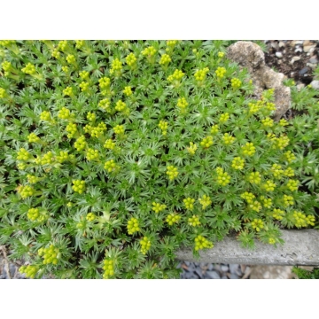 Hoogte:5cm.Bloem:groengeel in juni-juliZon,halfschaduwDoorlatende standplaatsGeschikt als bodembedekker9st.per m2