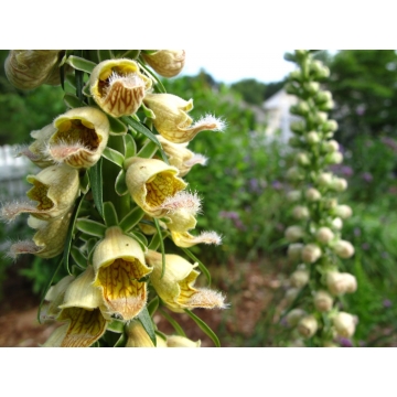 Vingerhoedskruid Hoogte:80cm. Bloem:lichtgeel in juli-augustus Zon,halfschaduw Droge standplaats Giftig Geschikt voor verwildering