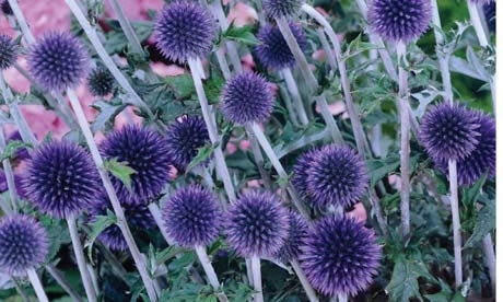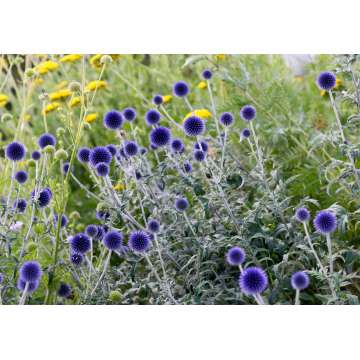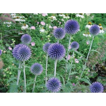 Kogeldistel Hoogte:100cm. Bloem:blauw in juli-september Zon Droge standplaats Geschikt als snijbloem en borderplant7st.per m2